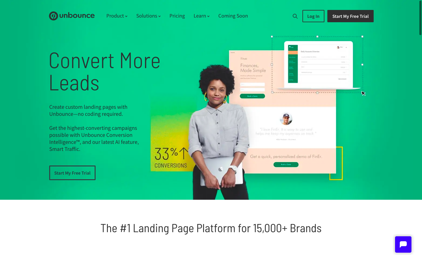 Unbounce is a drag-and-drop landing page, pop-up, and sticky bar builder, and a suite of tools to help you to increase conversions.