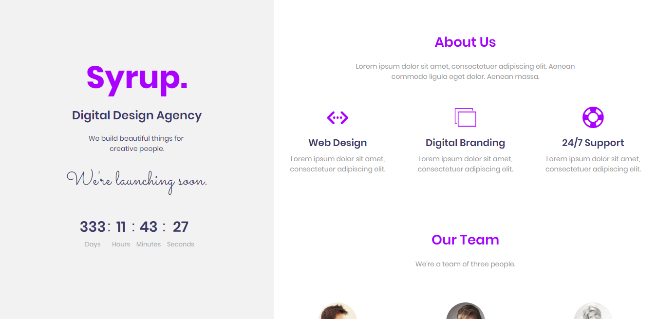 Syrup is a free Bootstrap 4 coming soon landing page developed by Wired Dots and released under Creative Commons 4 license. It is responsive , simple, beautiful and perfectly fits coming soon page for an upcoming website or mobile app.